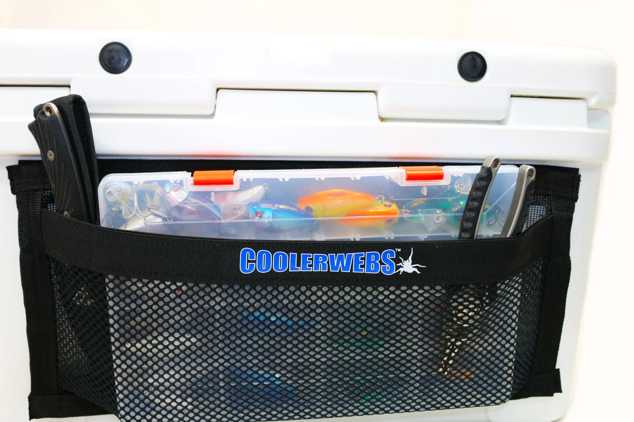 The CoolerWebs Large 20in x 9in Cooler Lid Storage Pocket is designed by TackleWebs specifically for use inside and outside of coolers. CoolerWebs mount with a specially formulated adhesive designed to withstand moisture and prolonged exposure to colder temperatures. When mounted directly to the underside of the lid, the storage pocket allows for food items to be kept cool without having to sit in direct contact with ice, keeping the items from getting soggy or waterlogged.