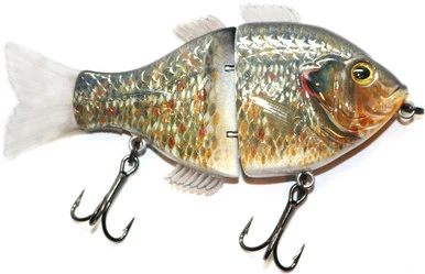 The Daddy Mac Sunfish features a lifelike representation of a live sunfish with its realistic design, swimming action, and its internal rattle that helps draw in monster bass. Comes with two 4x VMC treble hooks.