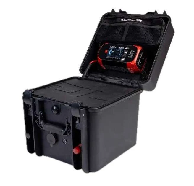 Waterproof and submersible (IP67) ruggedized Powerbox 60 military spec plastic case with shock proof battery cradle