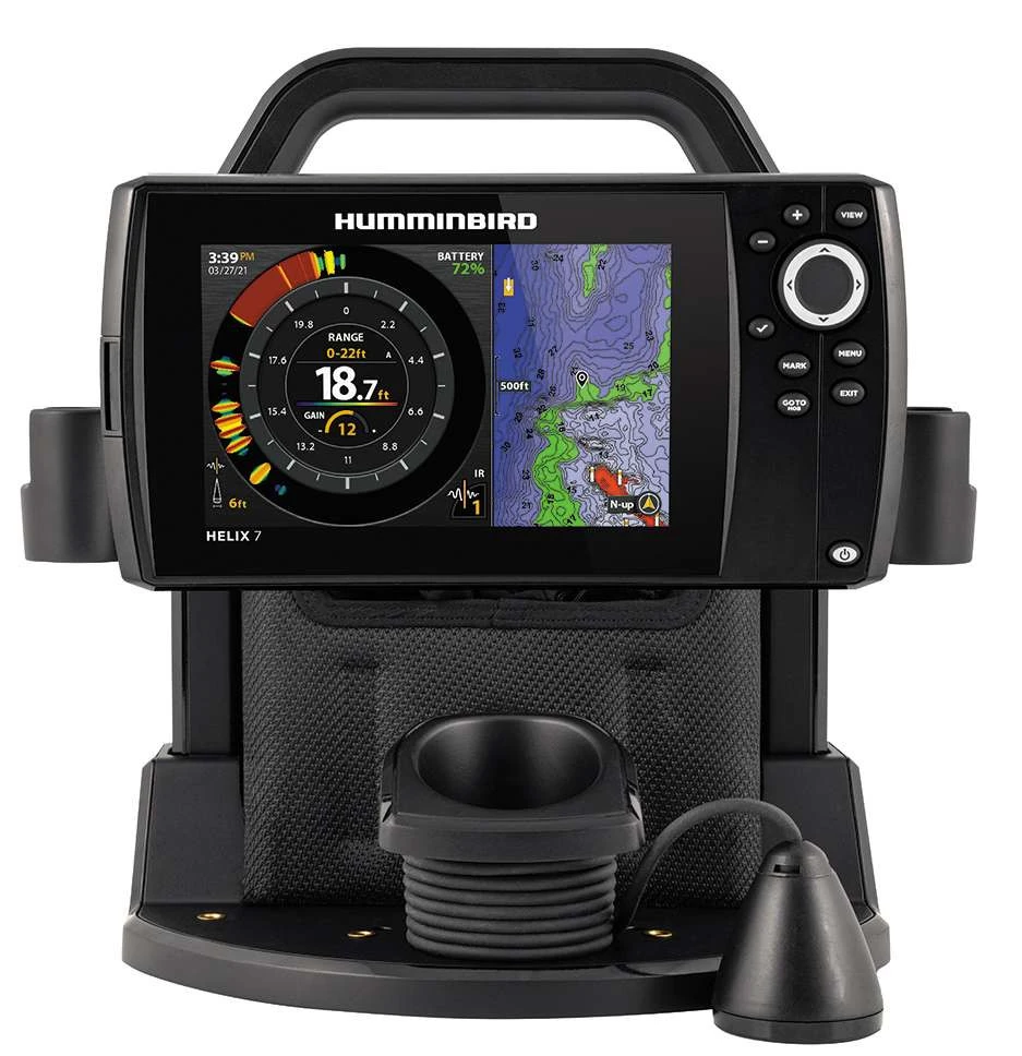 The ICE HELIX 7 CHIRP GPS G4 will not only help you catch the fish but will also help you find where to catch them. Take advantage of outstanding features like Dual Spectrum CHIRP Sonar with 3/4” target separation, CHIRP Interference Rejection, built-in GPS with Humminbird Basemap, and compatibility with both LakeMaster(r) or Navionics(r) maps. Additional features designed specifically for the ICE angler include AutoChart Live ICE, Jig Charge Mode, split-screen views, premium shuttle, and 15Ah lithium battery separating this unit from all others on the ICE. Take it all in on an ultra-bright 7” full-color LCD display.