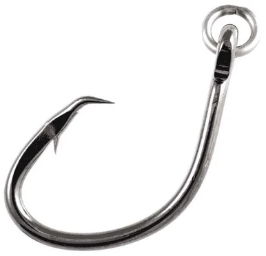 Equipped with a welded ring in the eye for reduced stress on the hook and increased landing percentages, the Owner Super Mutu Ringed Circle Hooks are the hook of choice for anglers targeting the world’s largest fish. These 4x strong circle hooks are intended to be paired with the heaviest of lines and tackle to do battle with anything from Bluefin, Yellowfin, and Bigeye Tuna to Black and Blue Marlin. The ringed construction allows live baits to swim more freely for a more natural presentation, while the hook’s ability to pivot on the ring tends to wear less of a hole in the fishes mouth during the fight. They feature a unique offset hangnail point to ensure fish are hooked in the jaw and not in the throat or guts. The black chrome finish is highly corrosion resistant to help provide uncompromising strength for many uses.