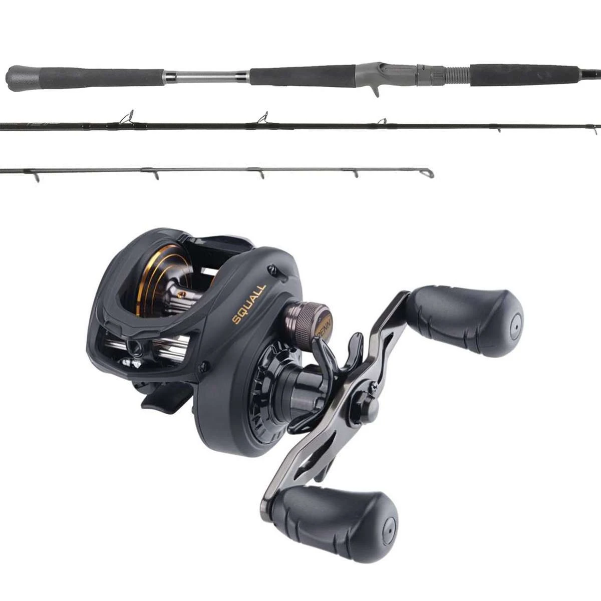 Featuring a full metal body for great durability, the Penn Squall Low Profile Baitcasting Reels are built to perform and exceed angling demands. This rigid metal framework eliminates reel flex, improving overall feel while creating a highly efficient reel that maintains greater power transmission with every turn of the handle. At the heart of the reel is its machined brass gearing, a premium and robust material that offers seriously smooth winding experience. Available in 200, 300, and 400 sizes along with standard and high gear ratios, the Squall Low Profile from Penn are perfect for chunking and winding baits, bottom fishing, and more.