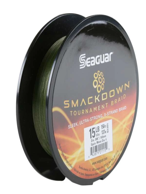 Providing the exceptional strength and sensitivity in an ultra-thin diameter, Seaguar Smackdown Braided Line achieves superior performance marks across the board. This tournament grade fishing line is made with 8 ultra-thin micro-weave strands in a round profile for smooth, accurate casting and superior manageability. It provides for great knot and tensile strength with unparalleled abrasion resistance. The Hi-Vis Flash Green color is great for instances when watching your line move in the water is key for detecting subtle bites.
