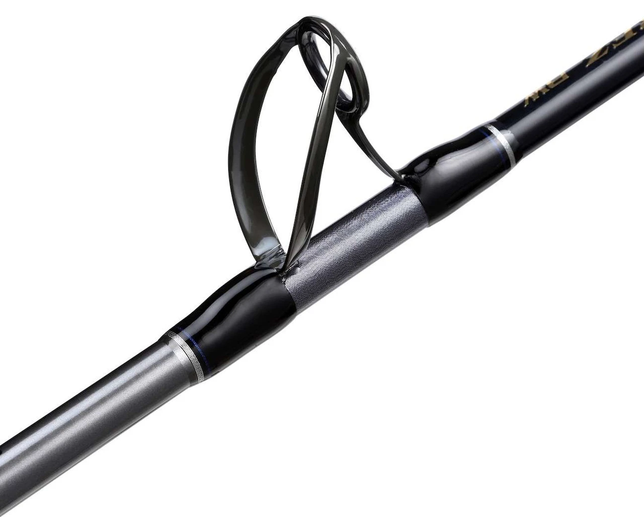 Utilizing state-of-the-art construction and components to give you the upper hand, the Shimano Terez BW Deep Drop Rods are the best possible choice for those whose target depth has no limits. Built on Shimano’s most advanced blanks to date, the Terez BW rods benefit from three proprietary Shimano blank technologies — Hi-Power X, Spiral X, and UD Glass construction. Spiral X construction consists of multiple layers of carbon tape that tightly wind the blank diagonally in opposite directions, resulting in enhanced torsional rigidity without adding extra weight. UD Glass greatly enhances rod strength while retaining the ability to flex. This combination of rod technologies increases the structural rigidity of the rods so that they remain true under load while enabling anglers to efficiently transfer power through the blank for much needed fighting power in heavy offshore applications. The Terez BW Deep Drop Rods are equipped with durable Fuji SiC Guides and an AFTCO Swivel Tip to minimize awkward angles and help improve boat-side landings. These deep drop rods are perfect for pairing with standard conventional reels or dendoh electric power assist reels for targeting species like tilefish, snapper, and grouper, but are not recommended for targeting swordfish. These rods are sold as blade-only, allowing anglers to pair them with whatever straight, bent, or adjustable uni-butt best suits their application.