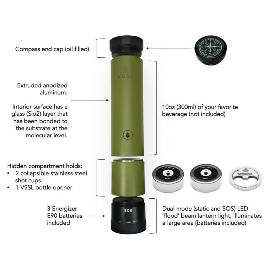VSSL Flask with LED Lantern Features: